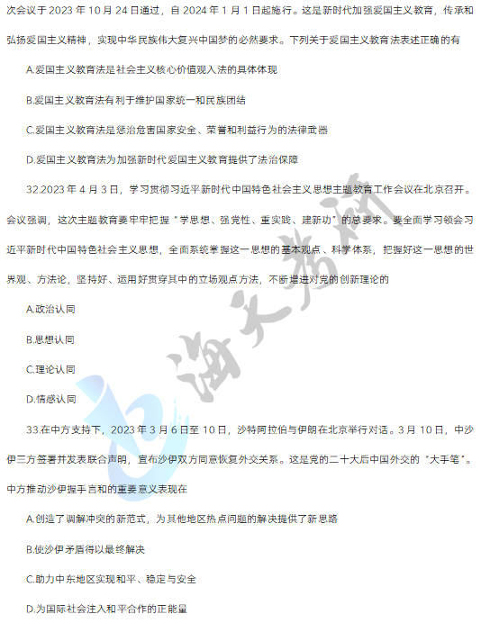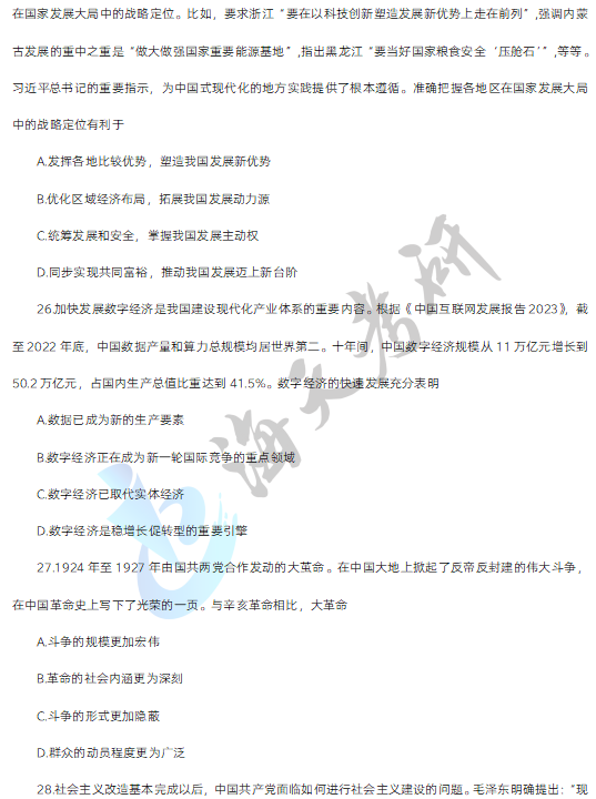 以上就是海天考研网为各位考生整理的2024考研政治真题及解析汇总,持续为考研学子更新其他考研科目考研真题及答案解析,各位考生可以根据自身需要关注收藏,及时查看完整版2024考研真题及答案解析。